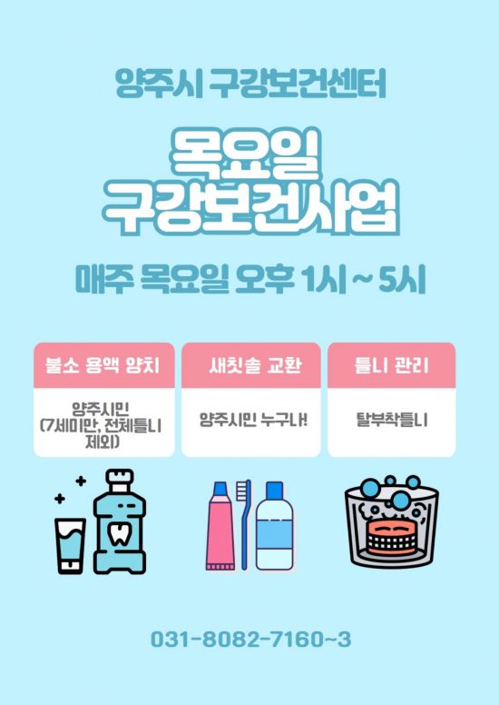양주시 관계자는 “올바른 구강 위생관리 습관을 형성하여 누구나 자연치아를 오랫동안 건강하게 사용하시기를 바란다”며 “앞으로도 양주시민의 구강 건강증진을 위해 최선을 다하겠다”고 밝혔다.