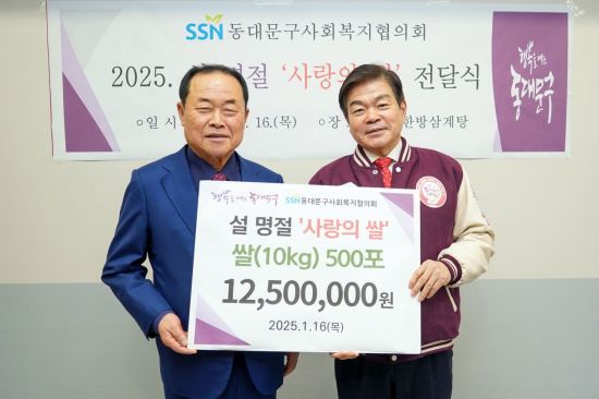 동대문구(구청장 이필형)는 지난 16일 동대문구사회복지협의회(회장 박상종)가 민족 대명절인 설을 맞아 어려운 이웃을 위한 상주 삼백쌀 10kg 500포(환가액 1250만원 상당)를 전달했다고 밝혔다.
