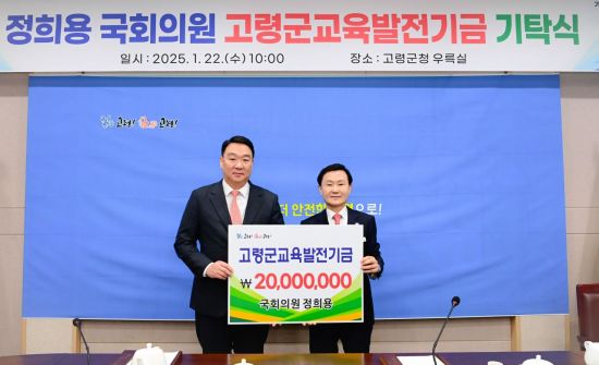 이남철 고령군수는 “지역 학생을 위한 지속적인 관심과 교육발전에 대한 나눔 실천에 노력해 주시는 정희용 의원께 깊은 감사를 드린다”며 “학생들이 밝은 미래를 꿈꿀 수 있는 교육환경 조성을 위해 최선을 다하겠다”고 화답했다.