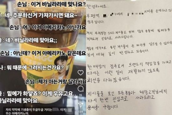 이어 "한 매장의 점주로서 브랜드의 책임감을 가지고 다시는 이런 일이 재발하지 않도록 최선을 다하겠다"며 "게시물을 보신 모든 분들과 해당 고객님에게 다시 한번 진심으로 사과드리고 용서를 구한다"고 덧붙였다.