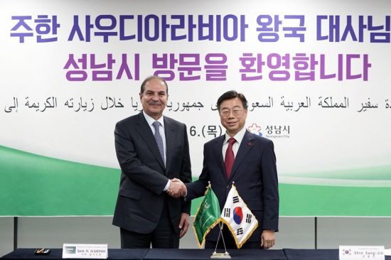 신상진 성남시장은 6일 사미 알사드한 주한 사우디아라비아 왕국 대사와 시청에서 면담을 갖고 양국 간 첨단 산업 육성을 위한 교류 협력 방안을 논의했다.
