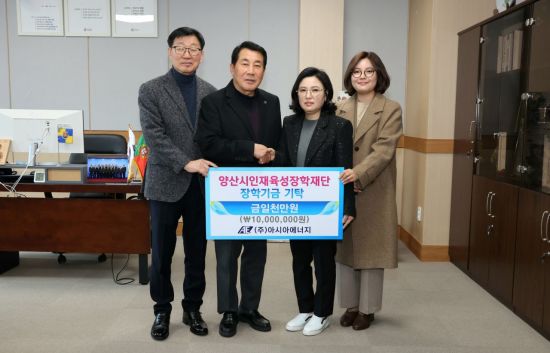 이희종 양산시인재육성장학재단 이사장은 “기부해 주신 장학금은 우리 지역의 미래세대를 위해 소중히 사용하겠다”고 감사 인사를 전했다.