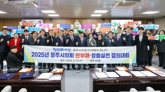 경북 영주시의회는 12일 본회의장에서 김병기 의장을 비롯한 의원들과 직원들이 함께 참여하는 '반부패·청렴실천결의대회'를 개최했다.