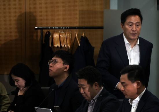 오세훈 서울시장이 13일 서울 중구 서울시 청사에서 열린 투자ㆍ출연기관 규제철폐 보고회에 입장하고 있다.