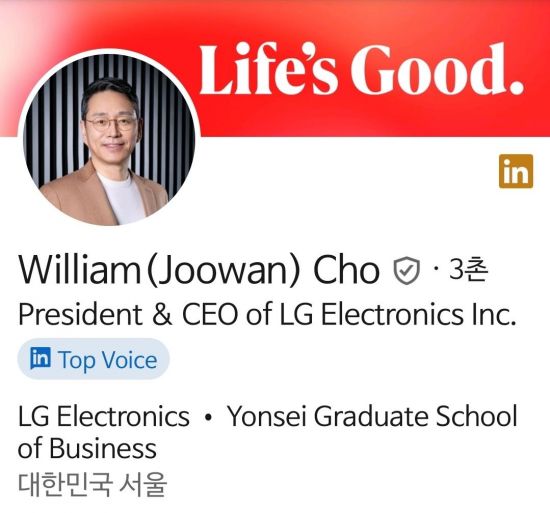 조주완 LG전자 최고경영자(CEO)가 비즈니스 전문 소셜미디어(SNS) 링크드인 계정을 개설한 지 10일 만에 국내에서 처음으로 '톱 보이스'로 선정됐다.