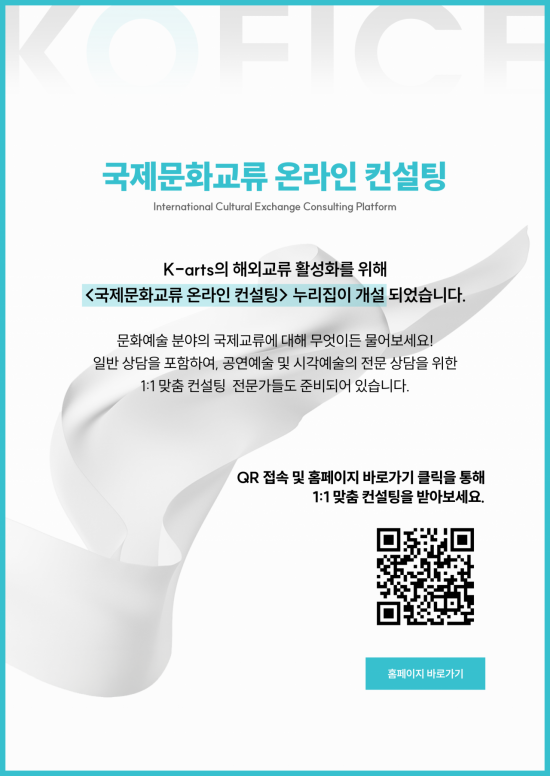 국제문화교류 온라인 상담 누리집에서는 정책정보와 국제문화교류 사업에 대한 일반 정보 외에도 해외 진출 희망 국가의 특성, 공연장이나 축제 정보 등 전문적인 질의에 대한 1:1 맞춤 상담을 제공한다. 특히 현장감 있고 실질적인 상담을 위해 전직 재외한국문화원장, 공연과 전시 등 분야별 국제교류 기획자와 전문가들이 상담자로 참여할 예정이다. 상담 신청은 누리집에서 받는다.