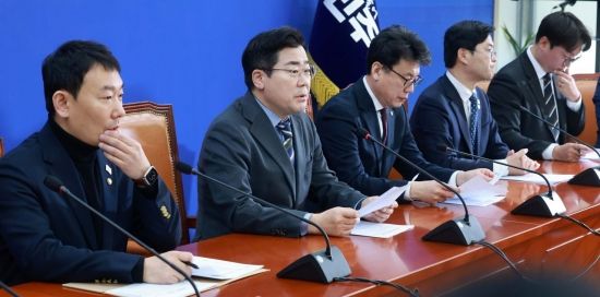 박찬대 더불어민주당 원내대표가 18일 국회에서 열린 원내대책회의에서 발언하고 있다.