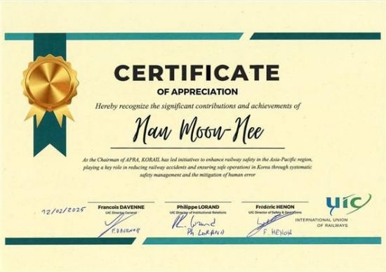 UIC는 코레일의 체계적 안전관리와 휴먼에러를 줄인 사고 감소 현황, 20년간 유지해 온 안전한 고속철도 운영 노력 등을 인정해 안전 인증을 수여했다.