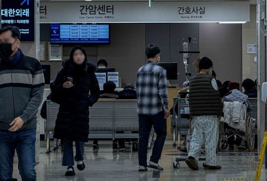 정부의 의대정원 2000명 확대에 반발해 전국 주요병원 전공의들이 의료현장을 떠나 의료대란 사태가 발생한지 일년을 맞은 18일 서울 종로구 서울대학교병원에서 환자와 내원객들이 이동하고 있다. 2025.2.18. 강진형 기자