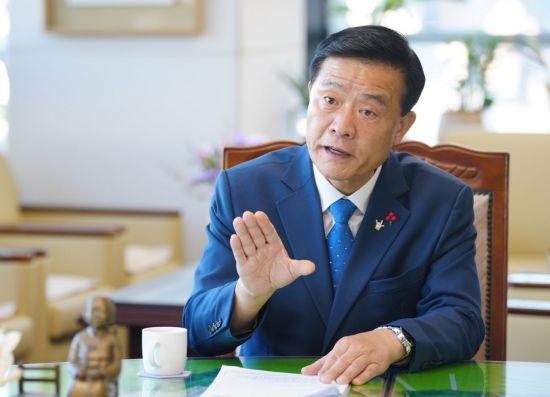 현장을 강조하는 이승로 성북구청장의 별명은 '이웃집 구청장 아저씨'다. 그도 그렇게 불리는 걸 좋아한다. 지난 19일 인터뷰 장소인 구청장실 회의 탁자 위에는 일본군 위안부 피해자를 기리는 평화의 소녀상이 올려져 있다. 성북구 제공.