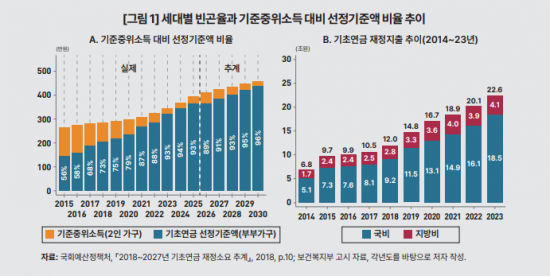 장기적으로는 노인을 대상으로 기초연금과 기초생활보장 제도를 통합해 노인 범주형 최저소득보장제도를 운용하는 방안을 고려해야 한다고 주장했다. 노인 범주형 최저소득보장제도는 저소득층 노인을 대상으로 최소한의 필수 생활비를 보장하는 공공부조제도다.