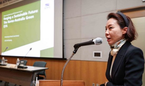 이주형 서울시립대 교수가 26일 서울 여의도 FKI 타워 컨퍼런스센터에서 열린 '한-호주 그린 EPA 비즈니스 포럼'에 참석해 '한-호주 그린 EPA의 의의 및 향후 방향'이란 주제로 발표하고 있다.