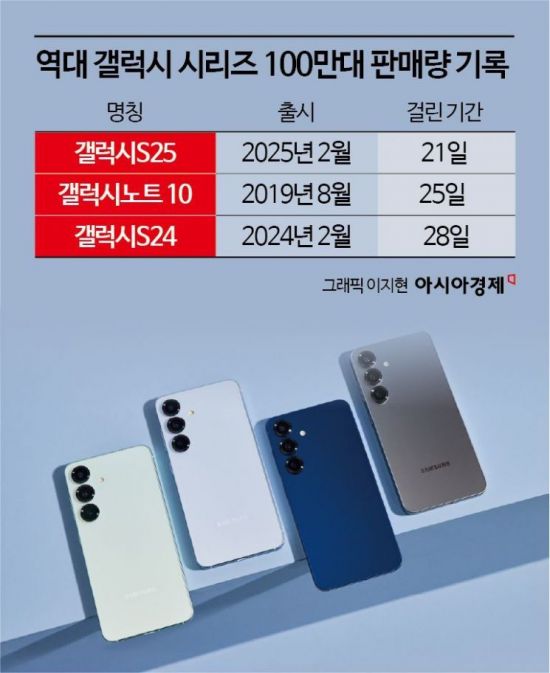 삼성전자가 출시한 개인화된 인공지능(AI) 스마트폰 ‘갤럭시 S25 시리즈’가 역대 갤럭시 시리즈 중 최단기간 국내 100만대 판매 신기록을 달성했다. ‘쉽고 직관적인 AI 기능, 얇고 가벼워진 디자인, 뉴 갤럭시 AI 구독클럽’ 3박자가 판매량을 이끌었다.