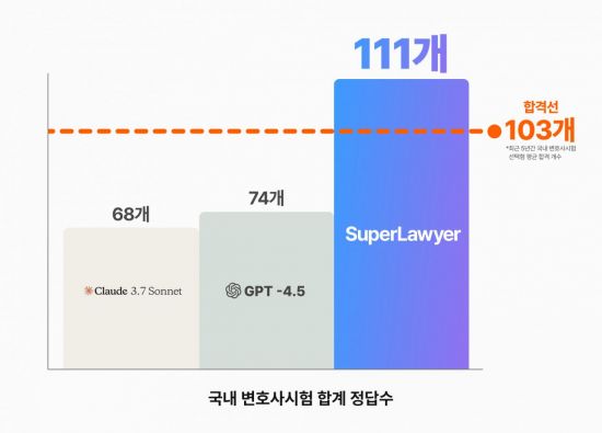 이는 세계적인 AI 모델들을 능가하는 성능으로, 특히 비영어권에서 해당 국가 언어로 AI 서비스를 활용해 변호사시험 객관식 전체 영역을 풀어 합격권에 든 것은 슈퍼로이어가 처음이라고 로앤컴퍼니는 설명했다. 이는 종전 최고 성적인 2023년 정답률 53.3%보다 크게 향상된 기록이다.