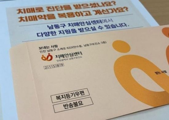 남동구는 지난해 12월 인천남동우체국과 업무계약을 맺고, 기존에 치매안심센터에 등록은 돼 있으나 지원 서비스를 받지 않는 300명을 대상으로 돌봄복지등기를 발송했다.