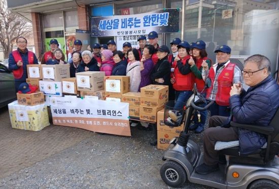 충남 서산지역 브릴리언스팀 반딧불봉사단이 '세상을 비추는 환한 빛'을 슬로건으로 11일 취약계층을 찾아 생필품 등 물품 기부를 하며 첫발을 내디뎠다.