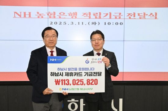 NH농협은행 하남시지부(지부장 이석표)는 지난 11일 하남시와의 협약에 의해 제휴카드 이용으로 발생한 적립기금 1억1302만5820원 전달했다고 12일 밝혔다