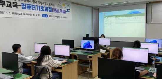 광주시는 장애여성 취업난 해소 및 일자리 제공을 위해 ‘장애여성 취업지원 사업’을 추진한다. 사진은 지난해 5월 광주여성인력개발센터 4층 컴퓨터실에서 진행된 프로그램 모습. 광주시 제공