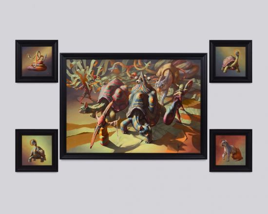 이번 전시에서는 상상 속의 반인반수, 서로 다른 동물끼리 결합된 느낌의 작품을 선보인다. 악어 머리와 독수리의 날개를 가진 짐승, 토끼 귀를 한 여인, 개의 외형과 능력을 얻은 인간의 모습을 통해 현실과의 이질감을 작품 제목인 ‘묘’한 감정에 담아냈다.