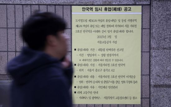 헌법재판소가 윤석열 대통령 탄핵심판 결론을 금주내로 내릴것으로 전망되고 있다. 17일 서울 종로구 안국역에 지하철 운영과 관련한 안내문이 붙어 있다.