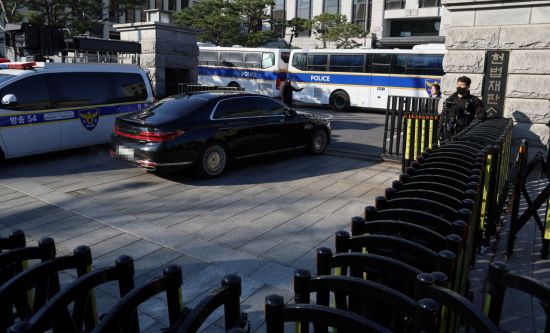 헌법재판소가 윤석열 대통령 탄핵심판 결론을 금주내로 내릴것으로 전망되고 있다. 17일 서울 종로구 헌법재판소로 재판관이 탑승한것으로 추정되는 차량이 들어가고 있다.