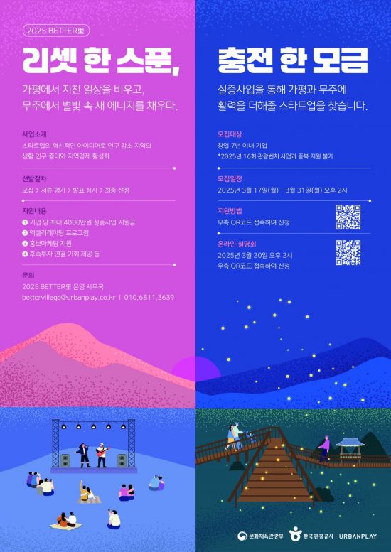 문화체육관광부와 한국관광공사가 오는 31일까지 '2025 배터리(BETTER里)' 실증사업에 참여할 스타트업을 모집한다.