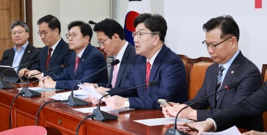 권성동 국민의힘 원내대표가 18일 국회에서 열린 원내대책회의에서 발언하고 있다.