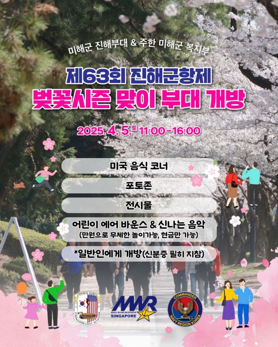 이성민 문화관광체육국장은 “미 해군 부대 개방은 오직 진해군항제에서만 경험할 특별한 기회”라며 “많은 시민과 관광객들이 방문하여 다양한 프로그램을 체험하길 바란다”고 전했다.