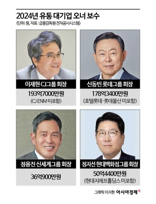 이재현 CJ그룹 회장이 지난해 190억원이 넘는 보수를 받아 유통 대기업 오너 중 1위에 올랐다. 이 회장은 2021~2023년 성과에 따른 두둑한 인센티브를 챙기면서 동종 업계 오너 가운데 가장 많은 보수를 받았던 신동빈 롯데그룹 회장을 제쳤다.