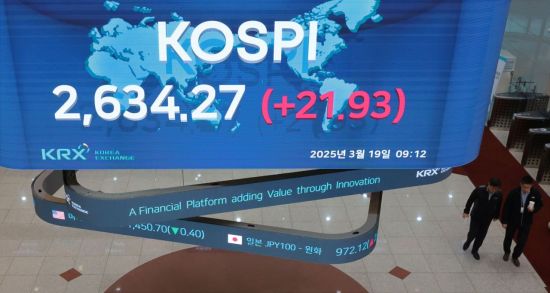19일 서울 영등포구 여의도 한국거래소 현황판에 코스피 지수 등이 표시되고 있다. 이날 코스피 지수는 전 거래일 대비 1.14포인트(0.04%) 오른 2613.48에, 코스닥은 2.33포인트(0.31%) 내린 743.21에 개장했다. 연합뉴스