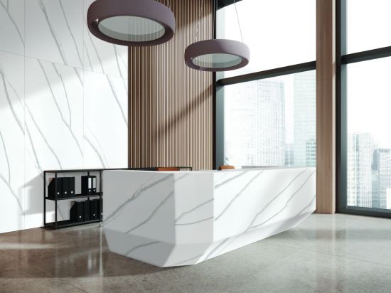 현대L&C의 인조대리석 브랜드 ‘하넥스’는 자재 간 이음매가 없어 깔끔한 시공이 가능한 데다 가공이 용이해 자연스러운 곡면 표현도 할 수 있는 마감재다. 작은 구멍이나 빈틈이 없는 무공질 자재이기 때문에 내오염성과 방수성이 우수하고 위생성도 뛰어나다. 주방 상판은 물론 병원, 학교, 박물관 등 다양한 상업시설의 건축 마감재로도 인기를 끌고 있다.