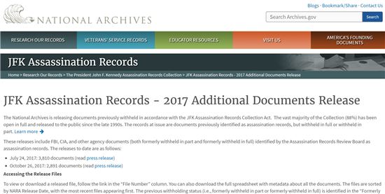 지난 2023년 미 국립문서보관소는 케네디 전 대통령 암살 관련 기밀문서에 관한 검토를 마친 결과 600만 페이지에 달하는 전체 기록의 99%가 이미 공개됐다고 밝힌 바 있다.