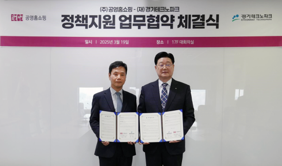 경기 테크노파크와의 업무협약은 이날 서울시 마포구 공영홈쇼핑 사옥에서 열렸다. 이종원 공영홈쇼핑 대표이사 공동대행과 정진수 경기 테크노파크 원장은 경기도 소재 중소기업 판로 확대 및 기술경쟁력 강화에 상호 협력관계를 구축하기로 했다.