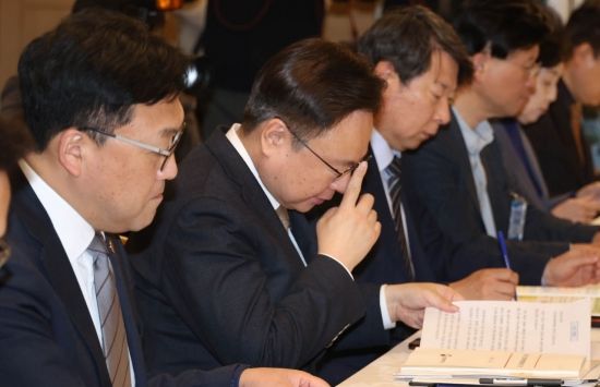 조규홍 보건복지부 장관이 19일 서울 종로 정부서울청사에서 여린 의료개혁특별위원회 전체회의에 참석, 생각에 잠겨 있다.