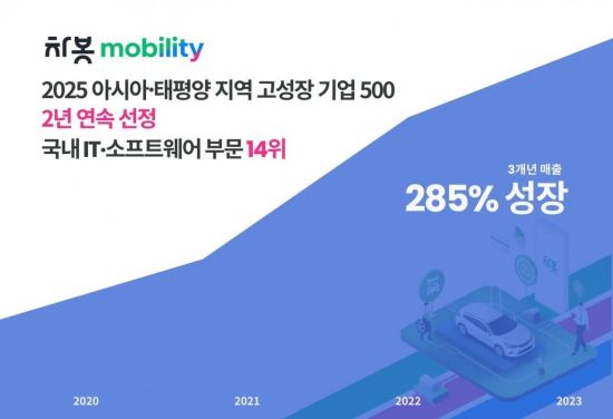 차봇모빌리티는 심사 기간 내 매출 성장률 285%를 거두며 전체 176위에 랭크됐다. 특히 한국 기업 중에서는 전체 50위, IT·소프트웨어 부문 14위라는 우수한 성적을 기록했다.
