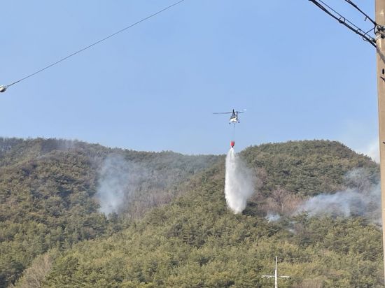 산림과 소방 당국은 진화 헬기 25대, 진화 차량 35대, 인력 555명 등을 투입해 오후 9시께 주불을 잡았다.