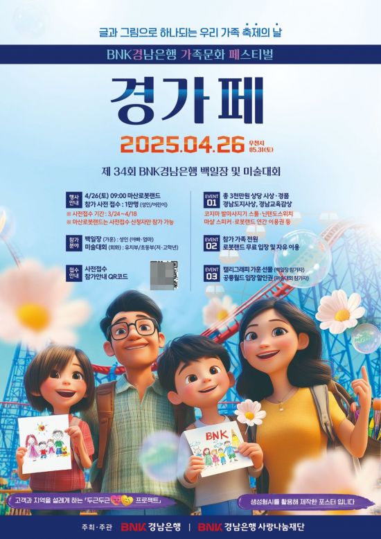 BNK경남은행은 오는 4월 26일 경남과 울산지역 최대 가족 문예 행사인 ‘BNK경남은행 가족 문화 페스티벌(이하 경가페, 부제: 제34회 BNK경남은행 백일장 및 미술대회)’을 개최한다.
