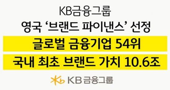 KB금융그룹이 세계적인 브랜드 평가 기관인 영국 브랜드 파이낸스가 발표한 'Banking 500(뱅킹 500)'에서 국내 금융기업 브랜드 가치 1위, 전 세계 금융기업 브랜드 가치 54위 기업으로 선정됐다.