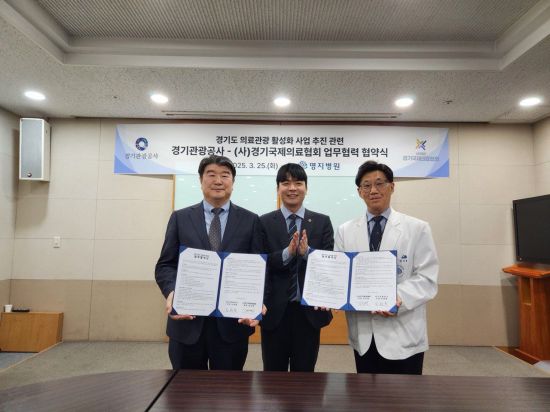 경기관광공사와 사단법인 경기국제의료협회가 25일 고양시 명지병원에서 ‘의료관광 활성화 사업 추진에 관한 업무협약(MOU)’을 체결했다.
