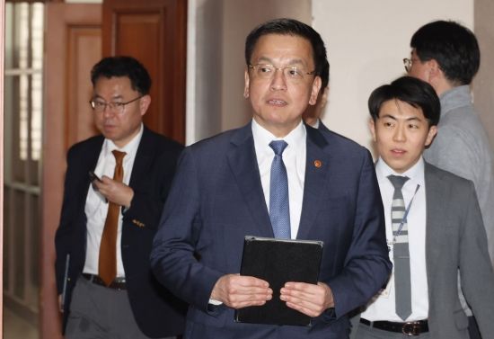 최상목 경제부총리 겸 기획재정부 장관이 25일 서울 종로구 정부서울청사에서 열린 공급망안정화위원회에 참석하고 있다.