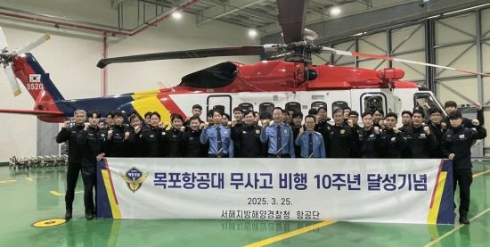 이명준 서해해경청장은 “목포항공대의 무사고 비행 10주년 달성은 모든 대원의 철저한 안전의식과 지속적인 교육훈련, 그리고 대원들의 헌신적인 노력이 만들어낸 값진 성과”며 “앞으로도 국민의 생명과 안전을 지키기 위해 최선을 다하겠다”고 말했다.