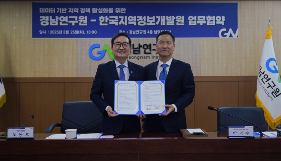 한국지역정보개발원은 25일 경남연구원과 데이터 기반 지역 정책 활성화를 위한 업무협약을 체결했다고 25일 밝혔다.
