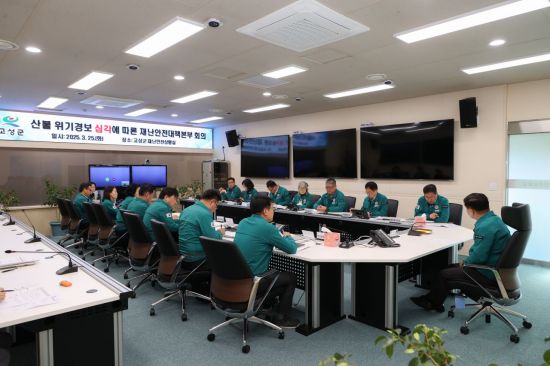 경남 고성군은 산불재난 국가 위기 경보 ‘심각’ 발령에 따라 지난 25일 재난상황실에서 재난안전대책본부 회의를 열었다.