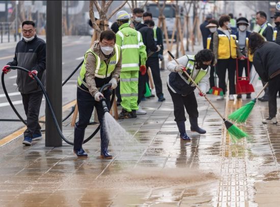25일 오전 9시 구는 4월 입주를 앞둔 신청사 앞에 집결, 본격적인 대청소를 시작했다. 김경호 구청장을 비롯해 청소과, 가로경관과, 동 주민센터, 주민자율청소조직 등 주민과 직원 100여 명이 모여 “깨끗한 광진!”을 외치며 대청소에 나섰다. 현장에는 물청소차 2대, 분진흡입차 1대, 노면청소차 1대가 투입됐다.