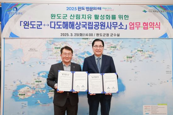 전남 완도군은 산림치유 활성화와 다도해해상국립공원의 자연·자원 보존을 위해 다도해해상국립공원사무소와 업무 협약을 체결했다고 27일 밝혔다.