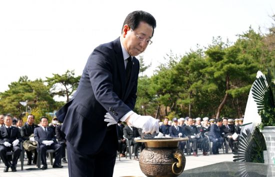 김 지사는 기념사에서 “조국 수호를 위해 목숨을 바친 서해수호 영웅의 애국심 덕분에 이 땅의 자유와 평화가 계속될 수 있었다”며 “조국을 위해 목숨을 바친 애국선열과 호국영령의 숭고한 뜻을 널리 알리고 예우에 더욱 정성을 쏟겠다”고 말했다.