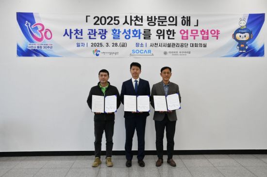 경남 사천시시설관리공단은 공단 대회의실에서 2025년 ‘사천방문의 해’를 맞아 사천바다케이블카와 아라마루 아쿠아리움, 그리고 공유 모빌리티 플랫폼인 쏘카가 공동 업무협약을 체결했다고 31일 밝혔다.