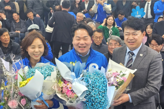 그는 전날 오후 10시 기준 100%의 개표율을 보인 가운데, 6847(40.37%)표를 얻은 국힘 강형석 후보를 1153표(6.8%p)차로 누르고 당선됐다.