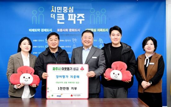 김경일 파주시장은 “영남지역 산불 피해지원을 위해 선뜻 기부해주신 장어명가 지중해와 원예봉사단체 '꽃으로', ㈜그린휀스에 감사드리며, 산불 피해로 어려움을 겪는 주민들이 일상을 회복할 수 있도록 특별 모금에 많은 관심과 참여를 부탁드린다”고 감사의 뜻을 표했다.