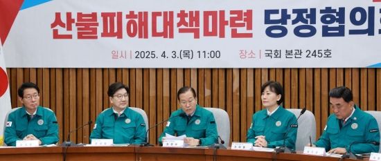 권영세 국민의힘 비상대책위원장이 3일 국회에서 열린 산불피해대책마련 당정협의회에서 발언하고 있다.